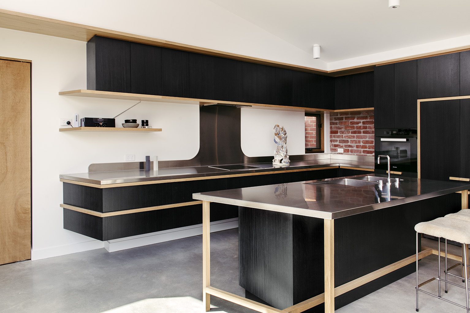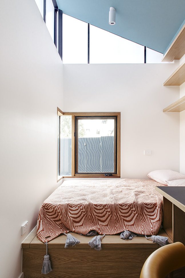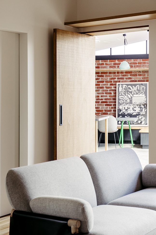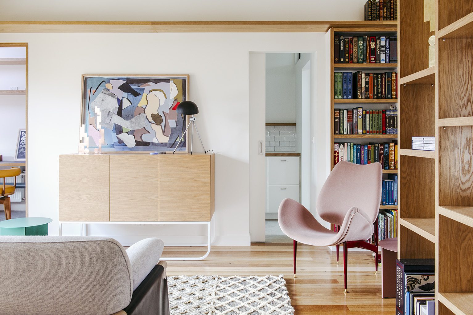 The site was small and intimate – which steered a lot of the functionality in the in-built joinery; as every opportunity to create storage was taken, including space for an extremely large book collection. Being a family with two little girls all the spaces have been designed to be fluid and expansive, with each sliding door disappearing to create an open space yet providing the option of closing down each room to create private nooks – for when that solitude is necessary. The girls’ room is separated by a large timber veneered siding door, allowing privacy as the girls grow older but providing them with the bonding needed during their younger years.