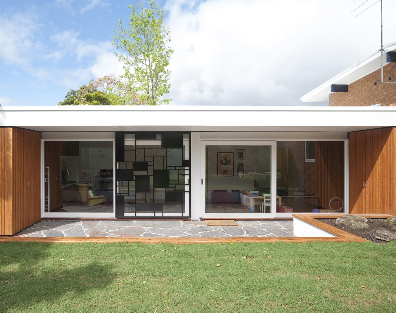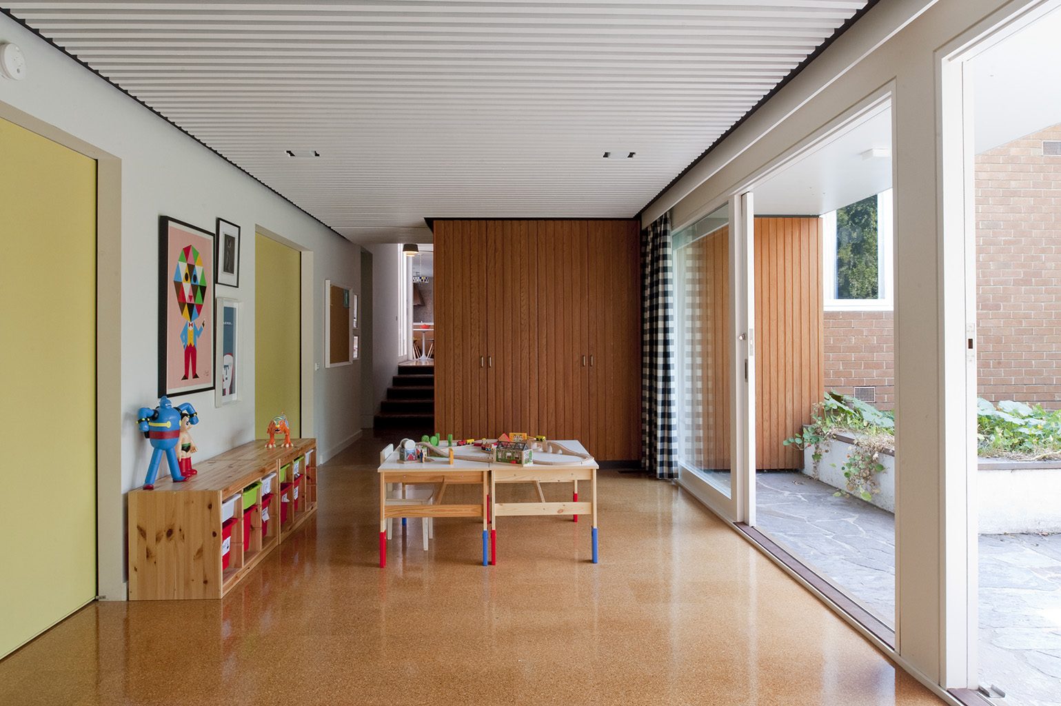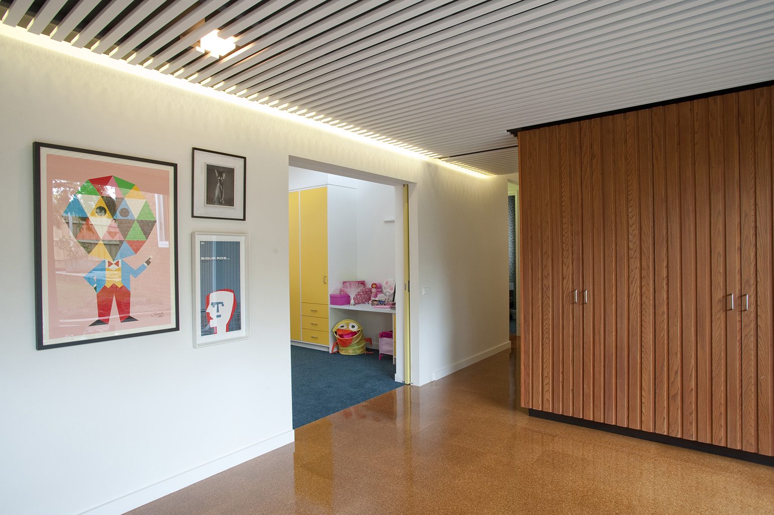 Here’s a project that slowly reveals itself, where the junctions between new and old are carefully weaved together. The original mid-century style house was built in 1963 and the client didn’t want us to touch it. Instead, they wanted the new kid’s wing (3 bedrooms, bathroom, laundry and rumpus) to reference the style of the existing house, without simply copying it. The new kitchen and meals area is a nice example of updating a design sensibility from another era.