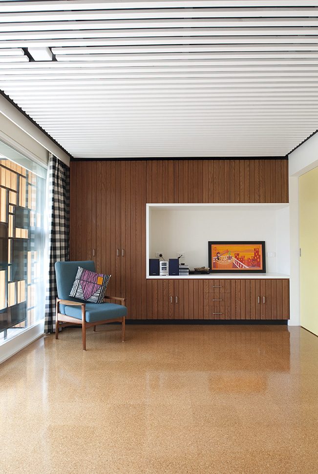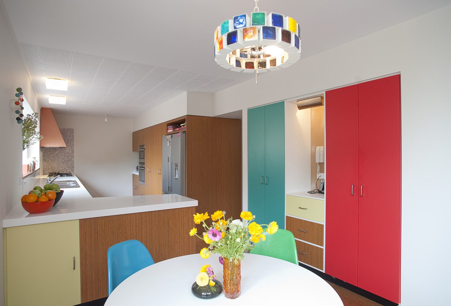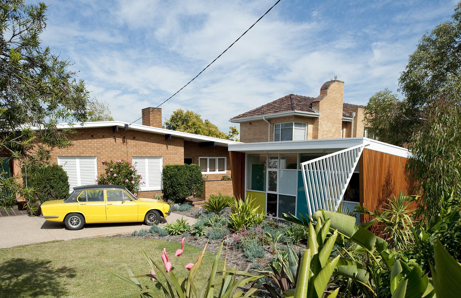 Here’s a project that slowly reveals itself, where the junctions between new and old are carefully weaved together. The original mid-century style house was built in 1963 and the client didn’t want us to touch it. Instead, they wanted the new kid’s wing (3 bedrooms, bathroom, laundry and rumpus) to reference the style of the existing house, without simply copying it. The new kitchen and meals area is a nice example of updating a design sensibility from another era.