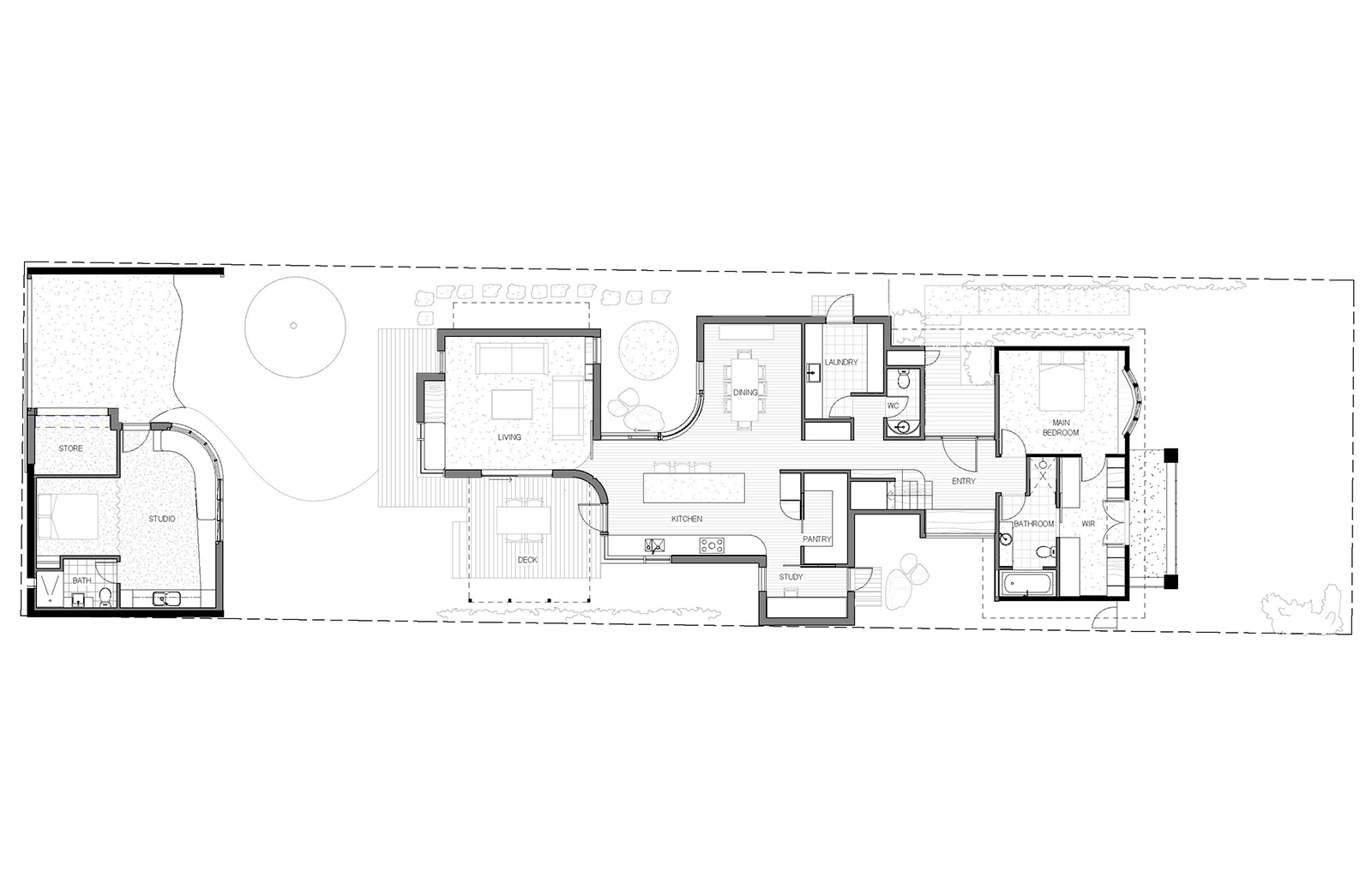The new design aimed to be playful and casual, filled with light, while preserving the generous garden space.