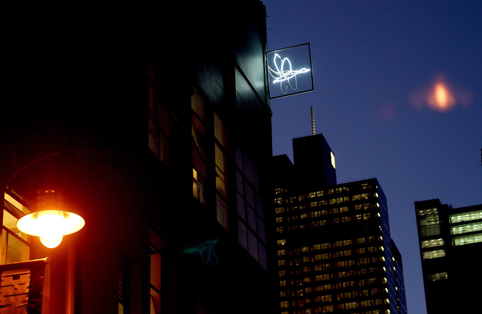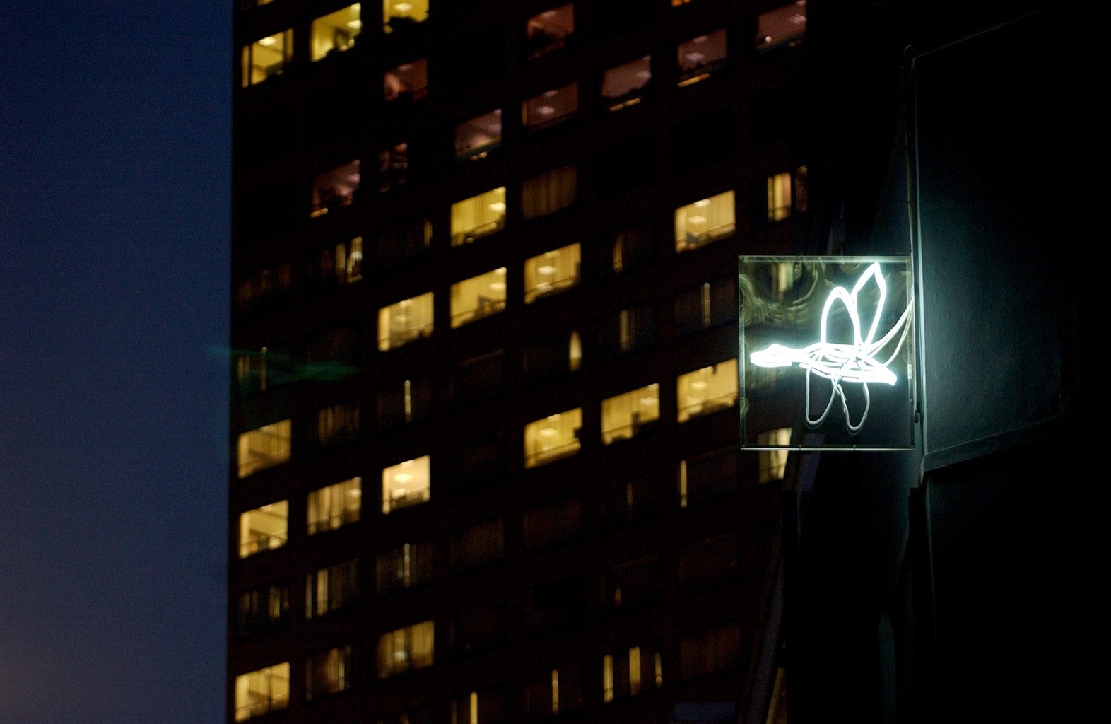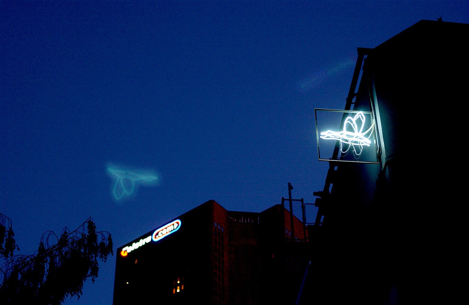 Produced as part of the Next Wave Festival 2006. A waitress at the Waiters Club in Meyers Place opposite the installation remarked, that one night when leaving the restaurant an elderly man walked past her and then stopped. He turned to her and said, “I’ve been walking down this lane for 20 years and tonight I look up and see a duck.”