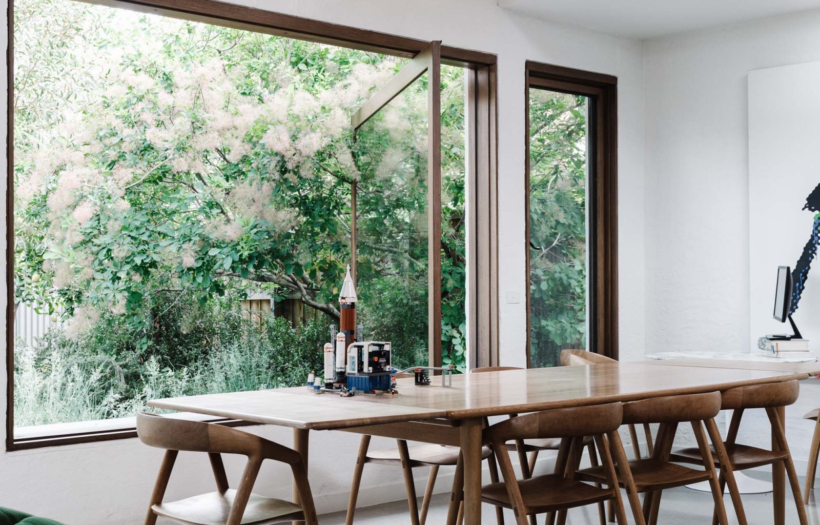 The design accomplishes this by creating window seats, which blur the distinction between inside and outside. Large pivot doors and double hung windows ensure that our clients can easily move between the house and the garden with ease. Every room is afforded a wonderful view of the beautiful garden created by Sam Cox Landscape.