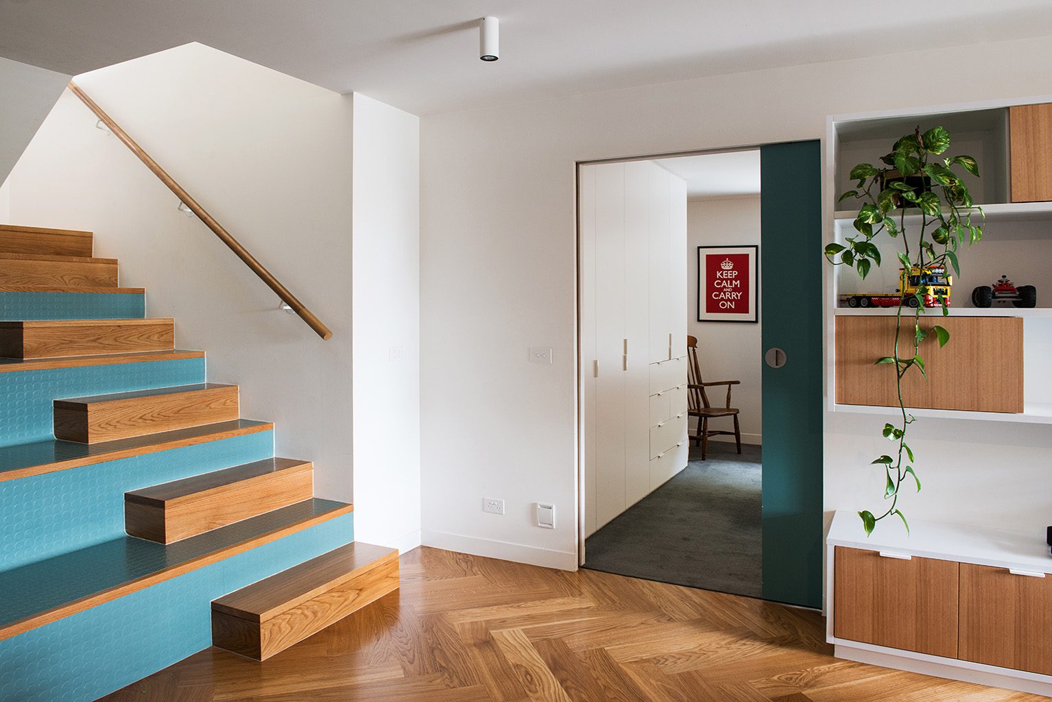 'To add some drama, the staircase, clad in studded rubber, doubles as a stage or for seating.'Stephen Crafti
