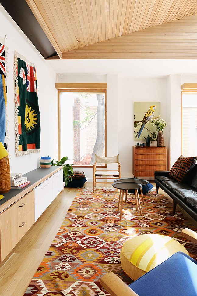 The rear addition carries a subtle 1970s character through its heavy brick corners, softened by timber lining boards that double as seats and eaves, and generous glazing that pulls the backyard into the heart of the home.