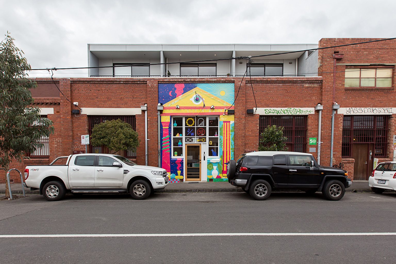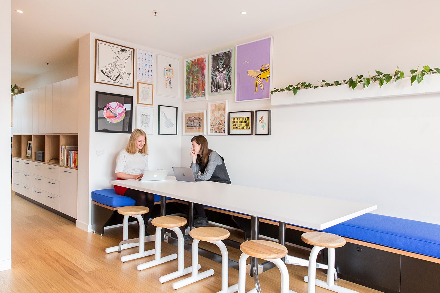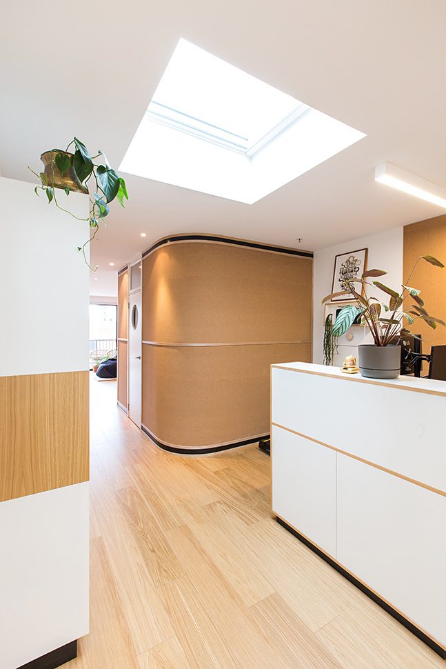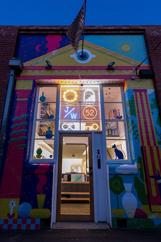 The Jacky Winter HQ is a distinctive project reflective of the companies’ culture, values and aesthetic. Split over three levels the Jacky Winter HQ houses Lamington Drive (Jacky Winter’s gallery), offices and a meeting room for the company’s 12 staff, a podcast recording room, and a self-contained ‘sleep room’ which can accommodate interstate artists and visitors for overnight stays.