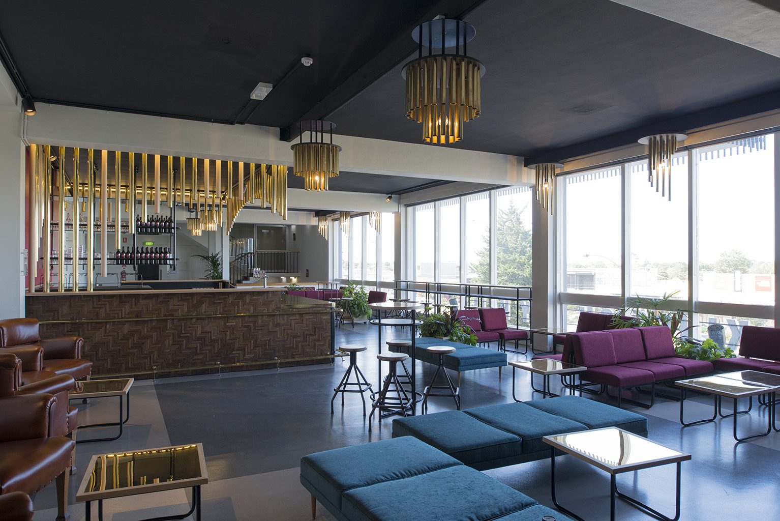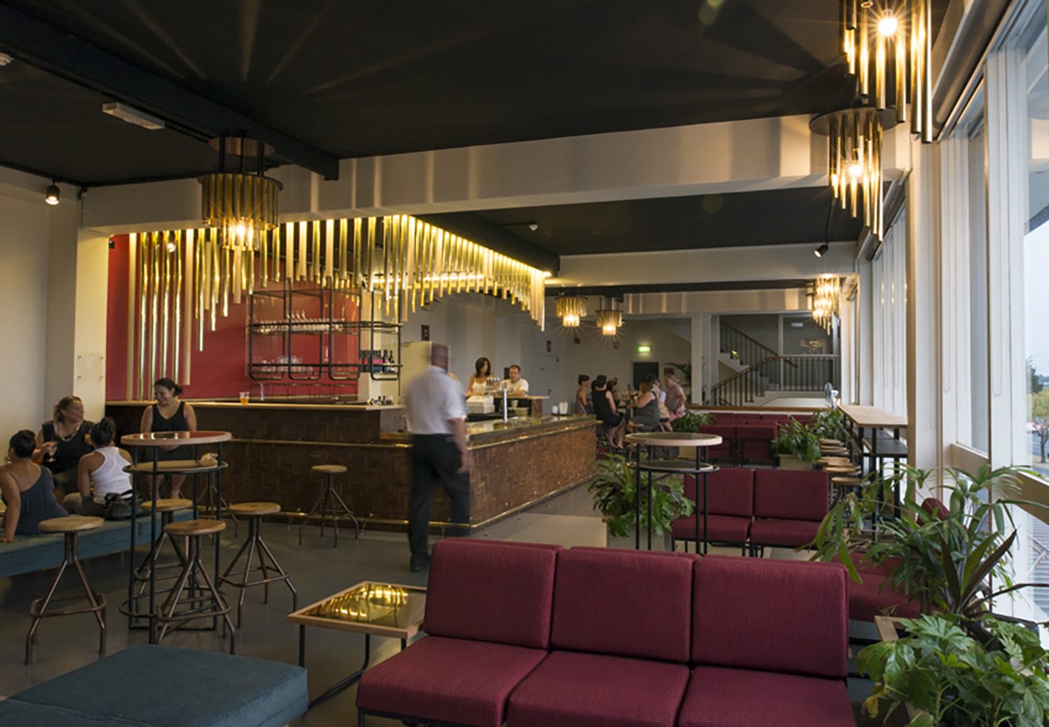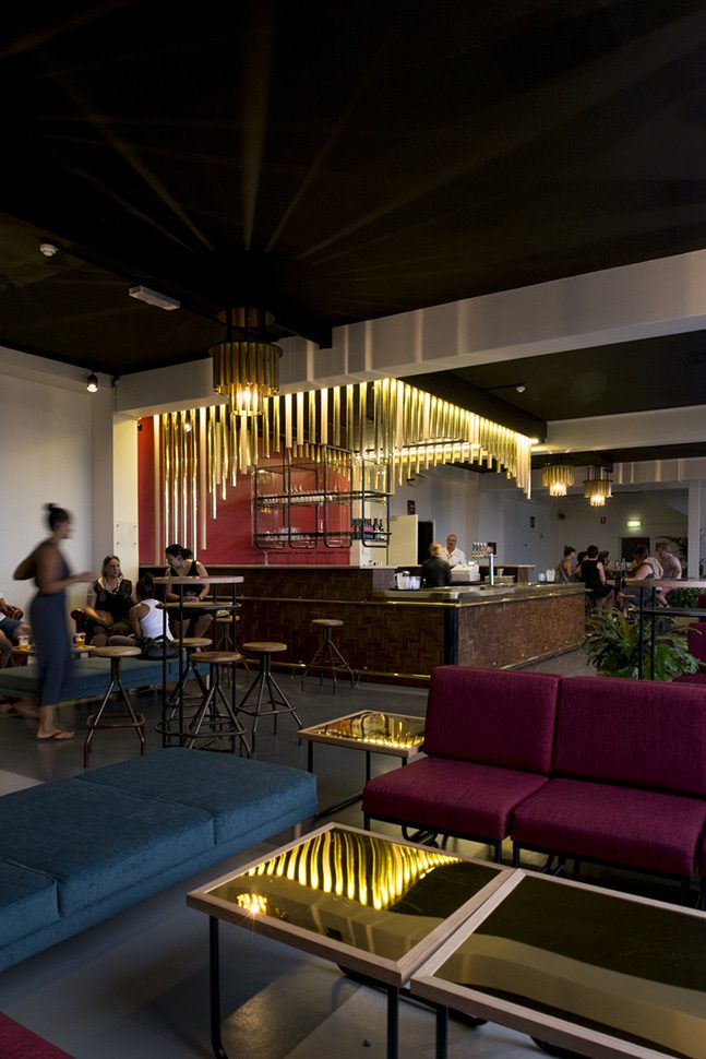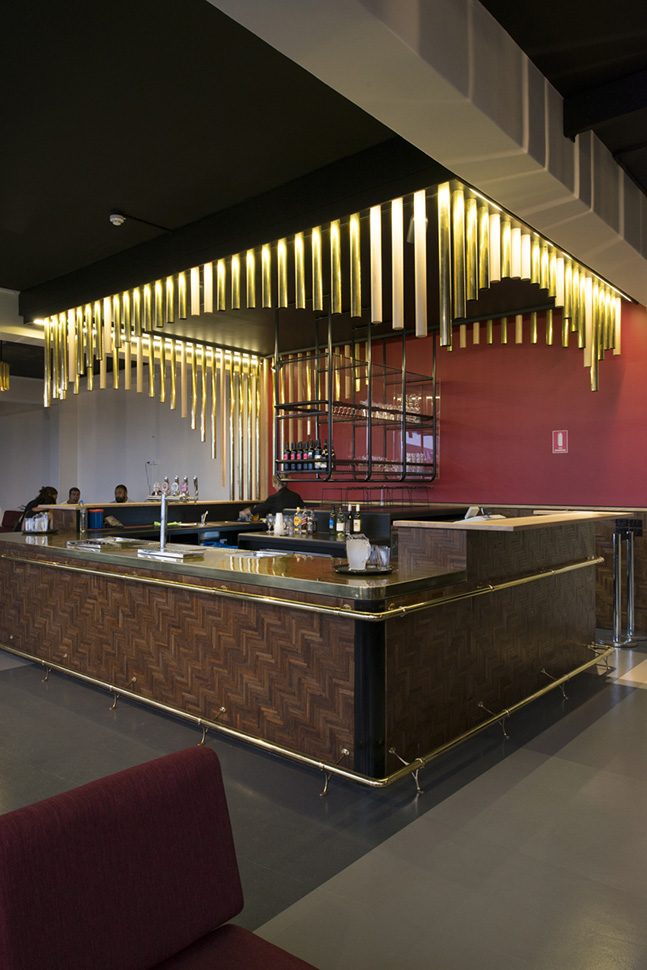 'Like a stage, the bar is wrapped with a curtain of brass flute-like cylinders.'Stephen Crafti