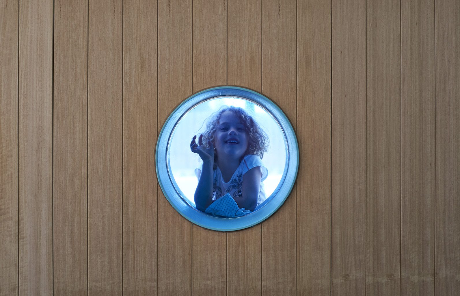 The children’s rooms explore the element of play in a very subtle manner – with the use of colour and inhabitable joinery – coloured acrylic ‘tunnels’ link the two main children’s rooms and provide an element of fun within these spaces.