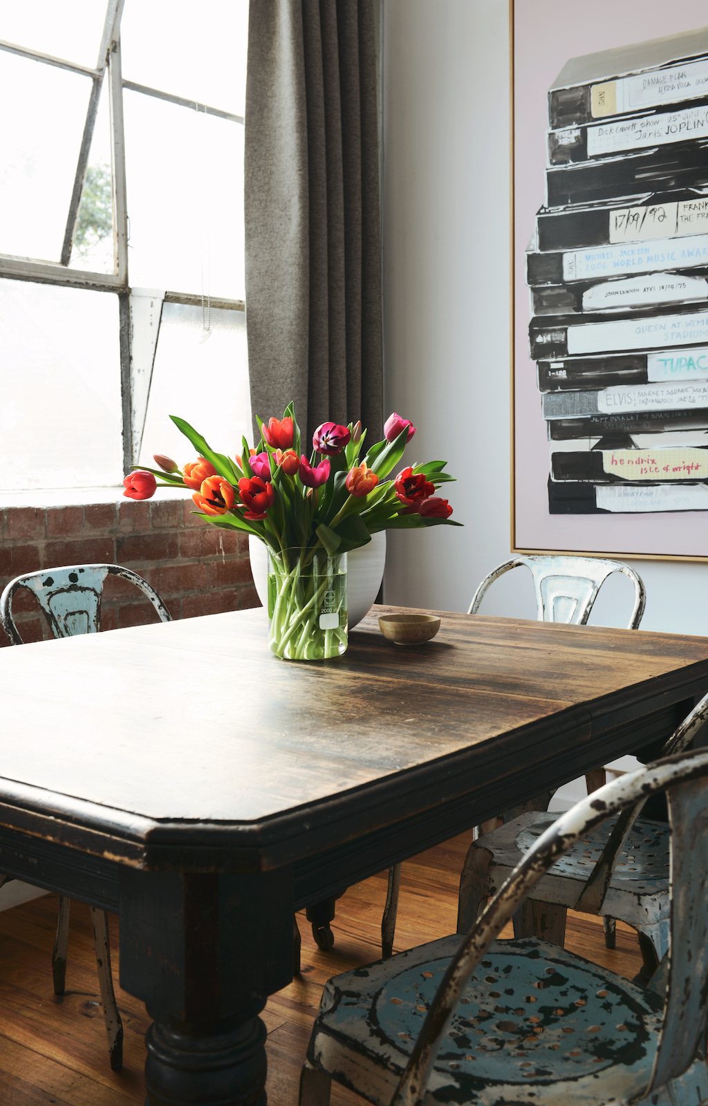 This two-storey warehouse on Albert Street in Northcote had been sitting as an empty shell. Our clients came to us wanting two things in the same building: building: a working florists warehouse on the ground floor and a home above it. The brief was direct and full of personality; reclaimed dark floorboards, a big communal kitchen table, an old-fashioned cooker, a cosy mezzanine for the living area, and an industrial feel without being sterile.