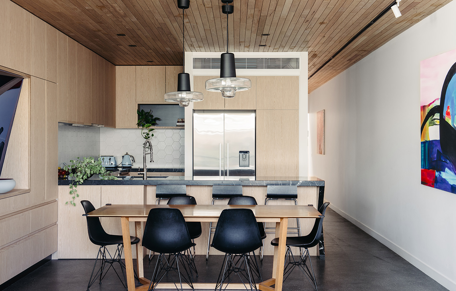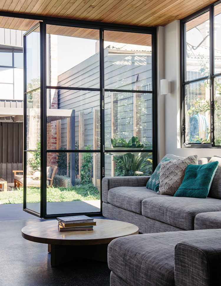 This family home, located on a narrow block in Melbourne is designed to be low-maintenance and robust, providing a comfortable and spacious environment for a family with two young girls.