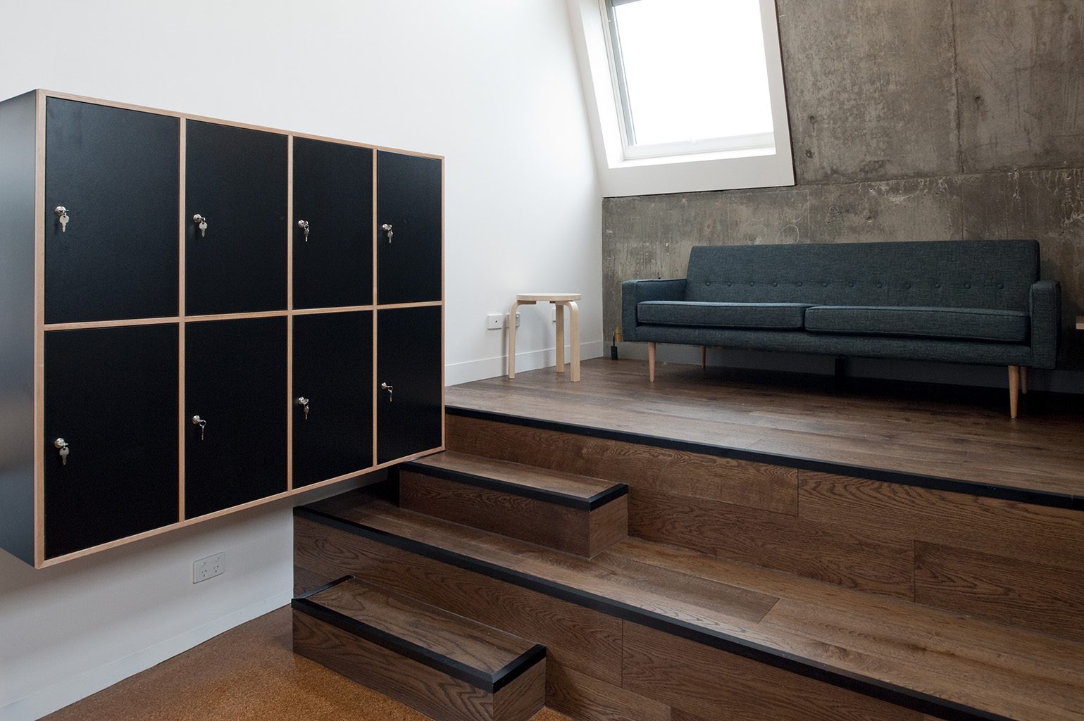 Converting under-utilised roof space on the 7th floor into post-graduate student accommodation was a fantastic opportunity to work with an iconic Romberg and Boyd building. Originally designed by Romberg, Boyd took over and added the distinctive ‘Akubra’ roof to the top! The unique space required a different approach to the standard student housing model, with student rooms maximising their small footprint through platforms to create zones and flexible built-in furniture.