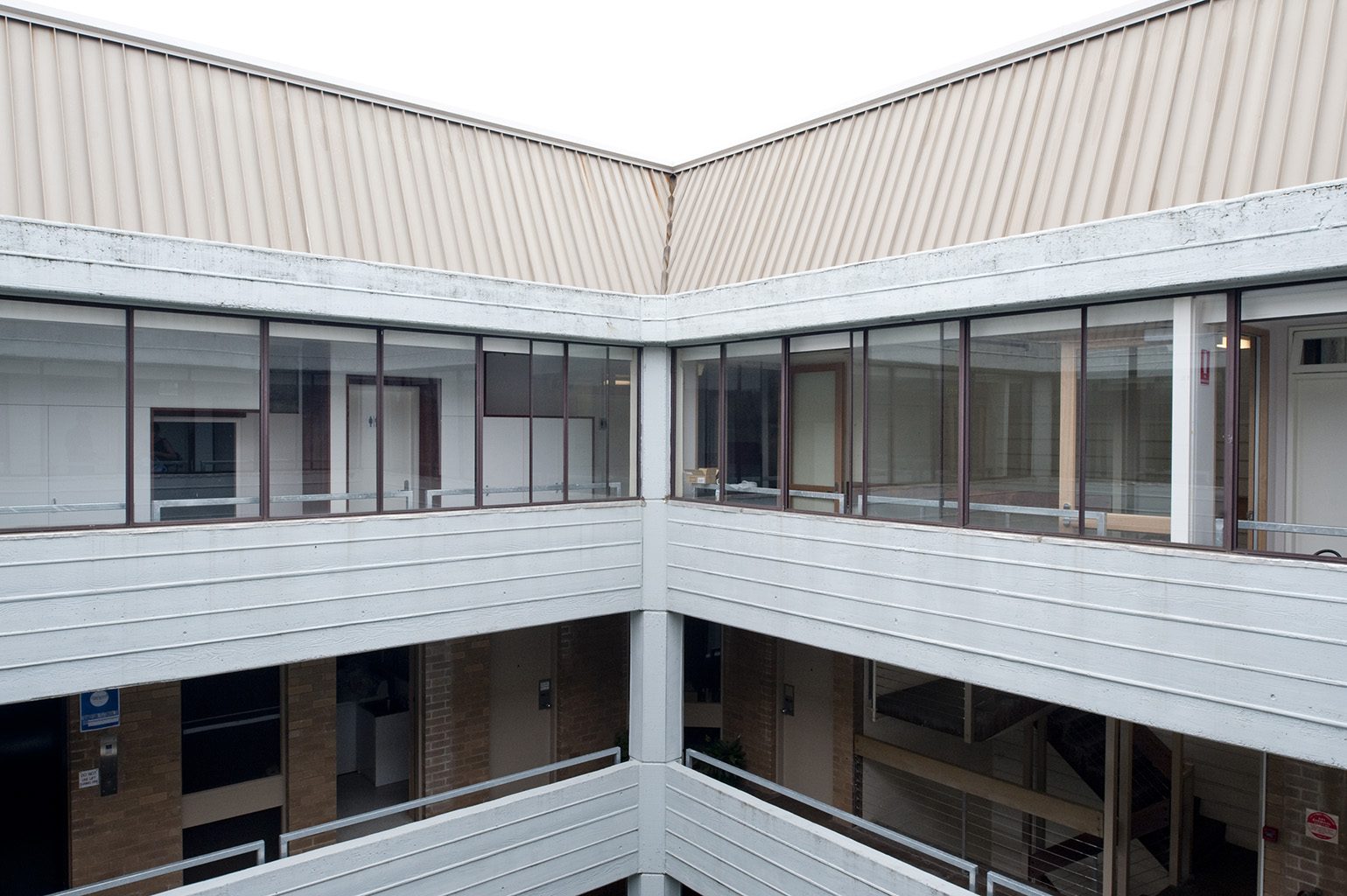 Nestled into the roof void of Frederick Romberg and Robin Boyd’s McCaughey Court student accommodation building at the University of Melbourne, 7th Heaven provides compact and economical housing for mature-aged students. Accommodation units are cleverly shoehorned into the steeply hipped “Akubra” roof form of the original building, creating dramatic double-storey accommodation units. They feel as unexpectedly generous in section as they do constrained in plan.