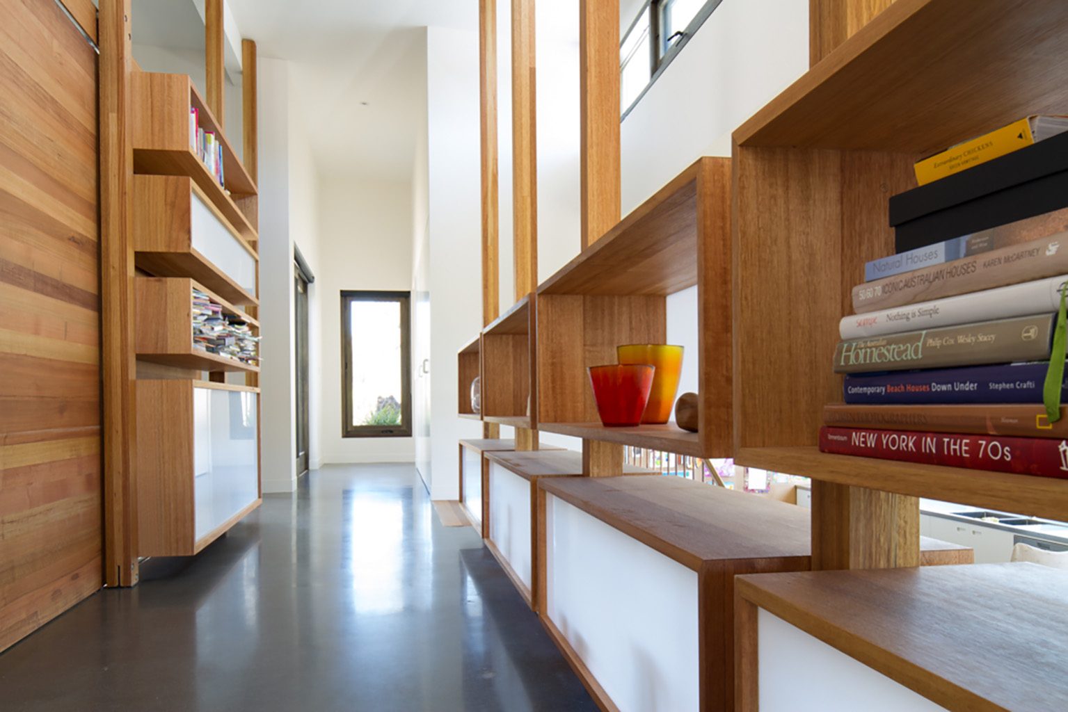 This unique design also ingeniously responds to the natural slope of the site by incorporating three interconnecting split levels, harmonizing the structure with the land’s natural contours.