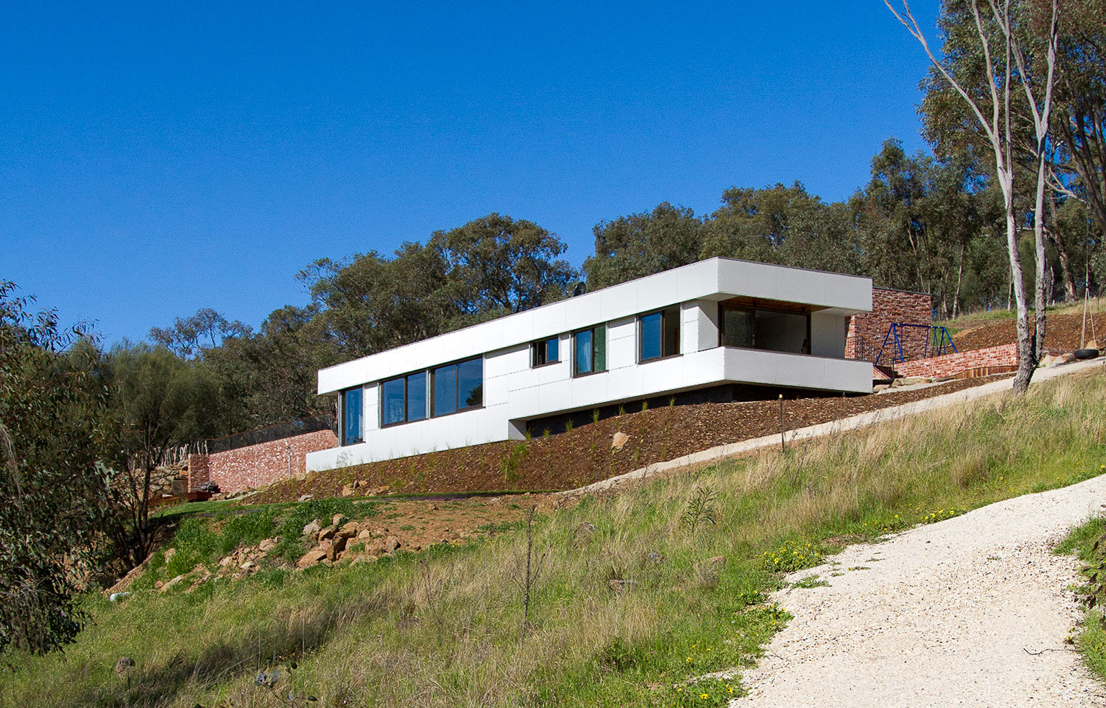 Nestled within the picturesque Splitters Creek, just outside of Albury, this new house sits on a vast 3.6-hectare plot of lush woodlands and sprawling grassland. Its carefully chosen location on the hillside not only offers breathtaking northern views but also holds sentimental value as it occupies our client’s favourite picnic spot.