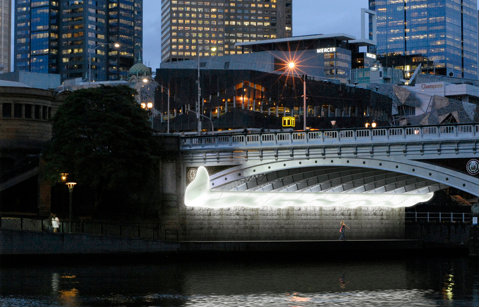 It is a space on the city’s edge, a threshold between the river and the CBD. It straddles both areas but refuses to take on the identity of either. The much-maligned Yarra River’s never-ending ‘ebb and flow’ carries life and death to the bay. Adjacent is the city and its ceaseless flux of people hurrying to and from their daily lives. Between the two a threshold is made without program or function a space that allows all manner of behavior and experience to occur.